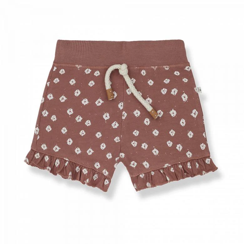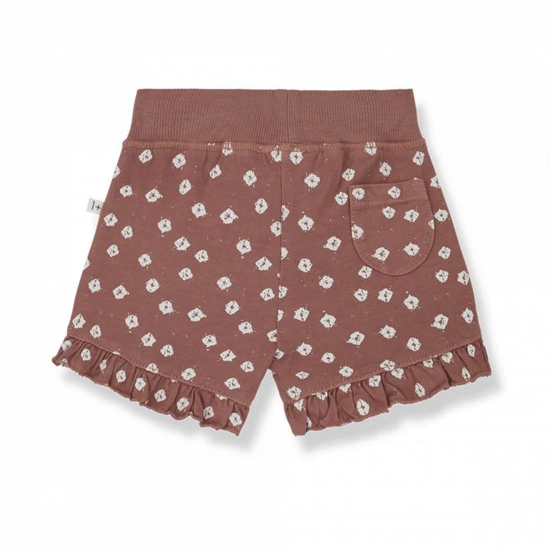 Shorts in morbido cotone, fantasia all over a fiorellini, elastico e coulisse in vita.