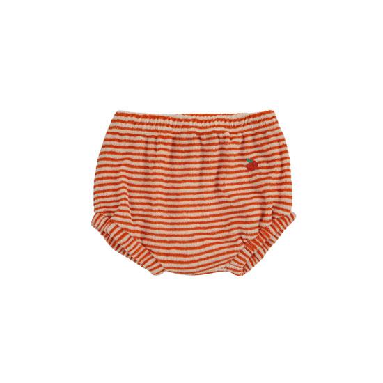 46% organic cotton, 42% cotton, 12% polyester orange shorts. Designed with elasticated cuffs, elasticated waistband, embroidery and baggy fit. Made in Spain.