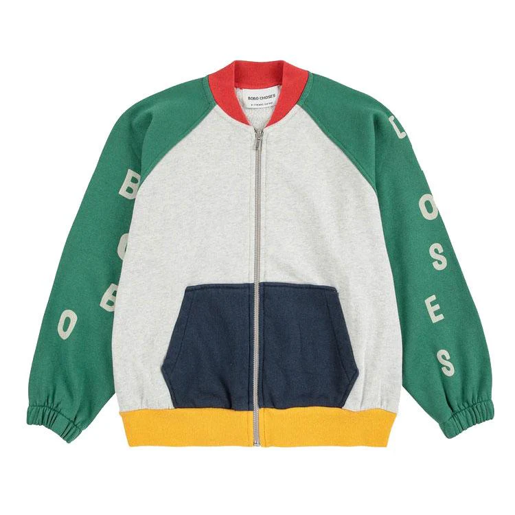 Multicolor sweatshirt. Designed with long sleeves, raglan sleeves, zipped, elasticated cuffs, loose fit, ribbed bottom, high neck, kangaroo pocket and inner brush fleece. Made in Portugal.