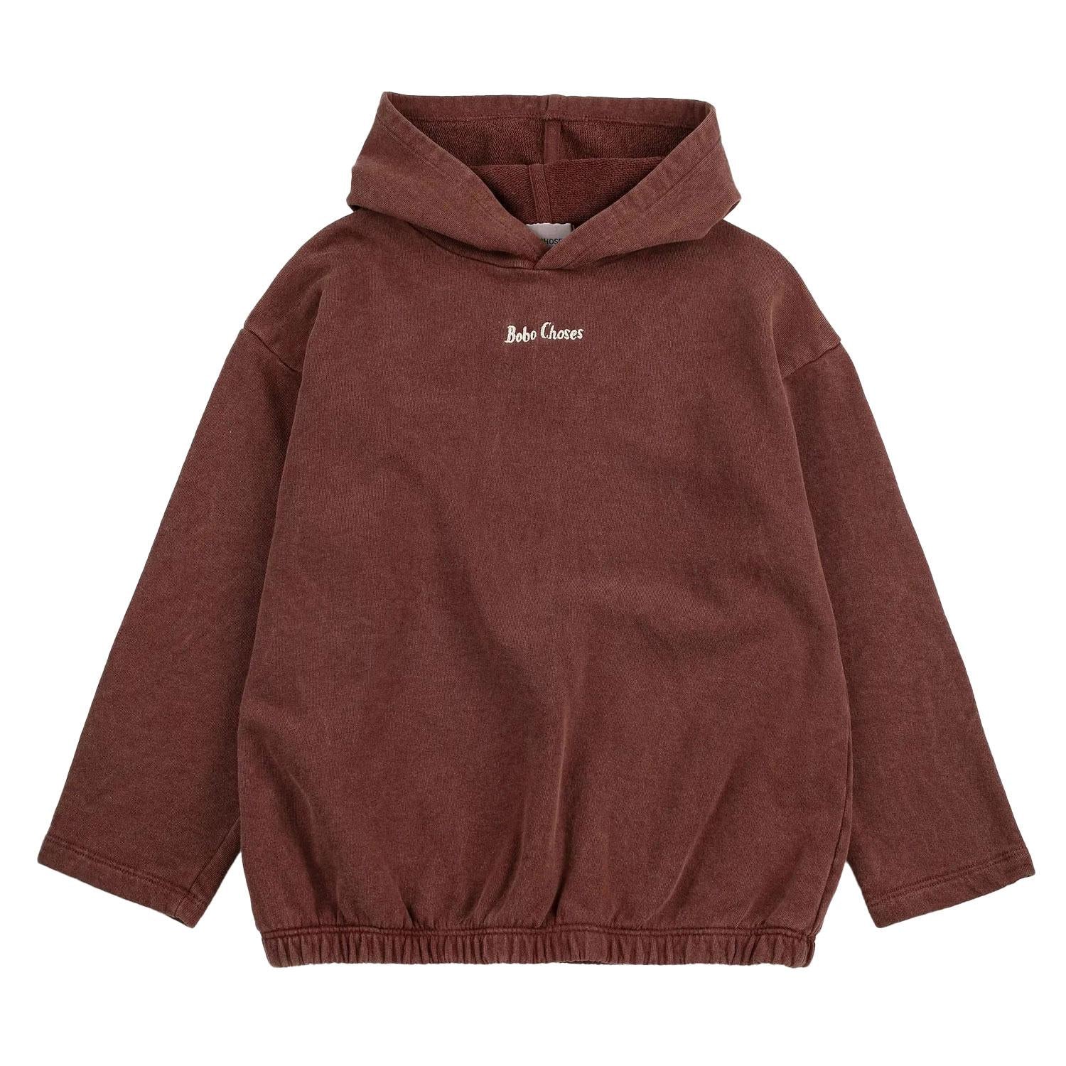 Brown sweatshirt. Designed with hooded, elasticated bottom, embroidery, loose fit and fleece. Made in Spain.
