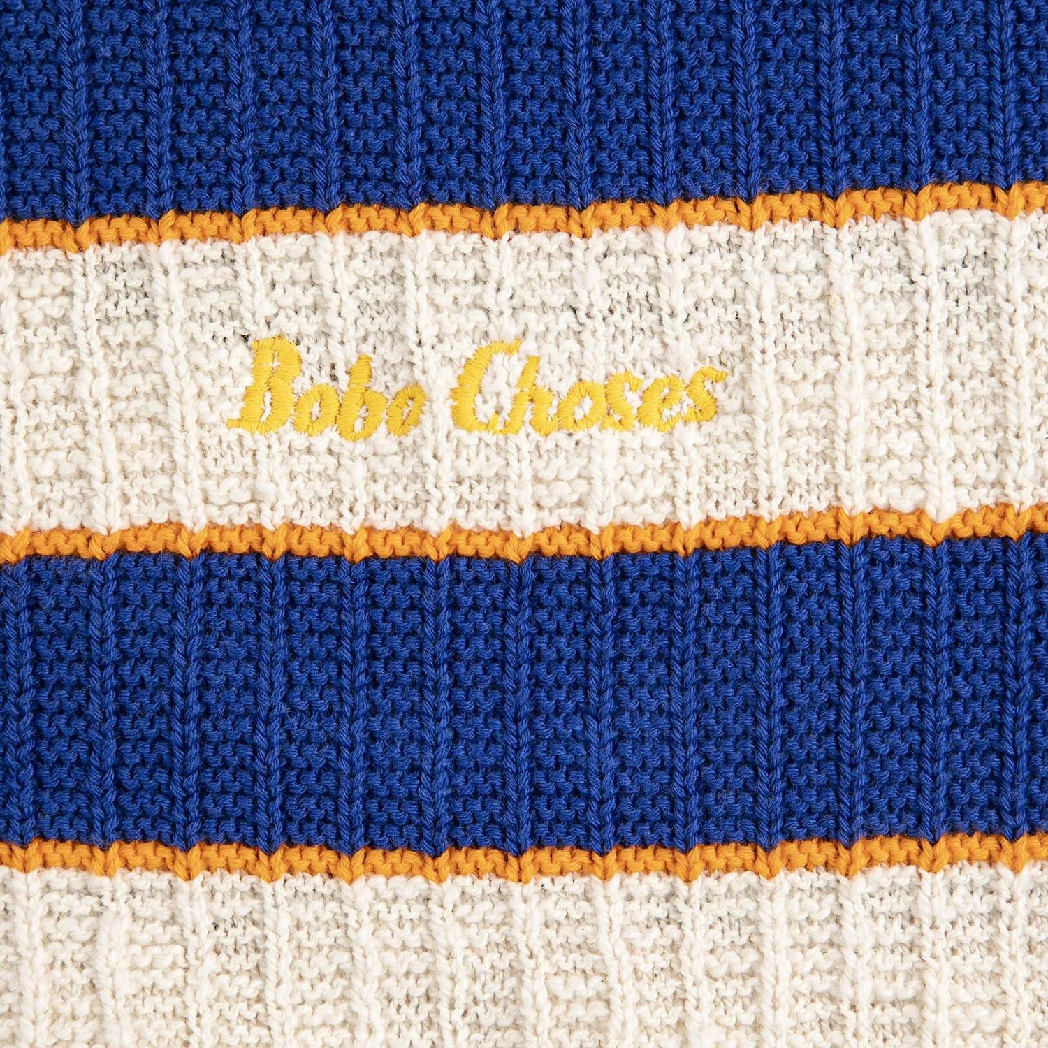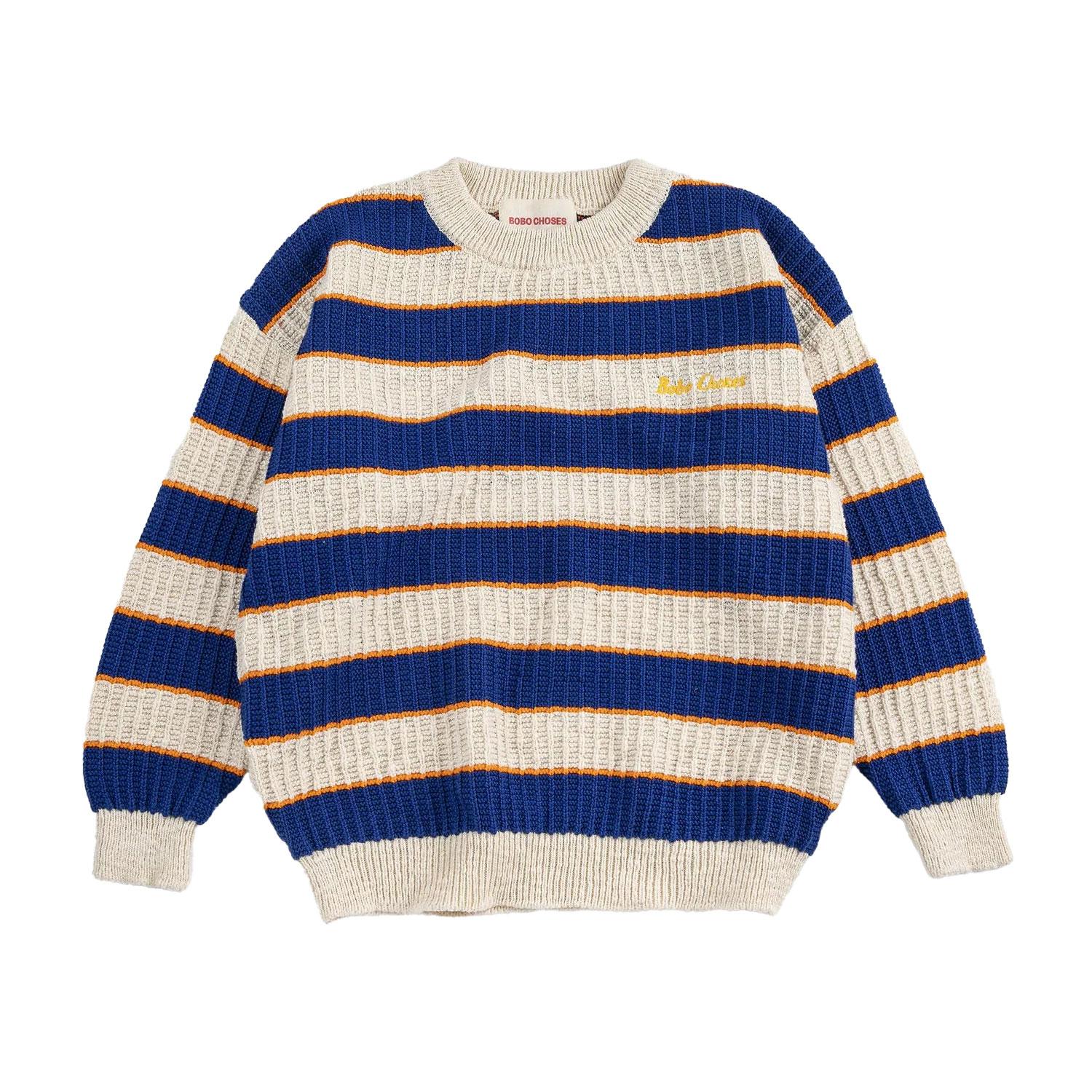 Blue jumper. Designed with long sleeves, dropped shoulder, ribbed cuffs, embroidery, texture knit, loose fit, ribbed bottom and round neck. Made in Spain.