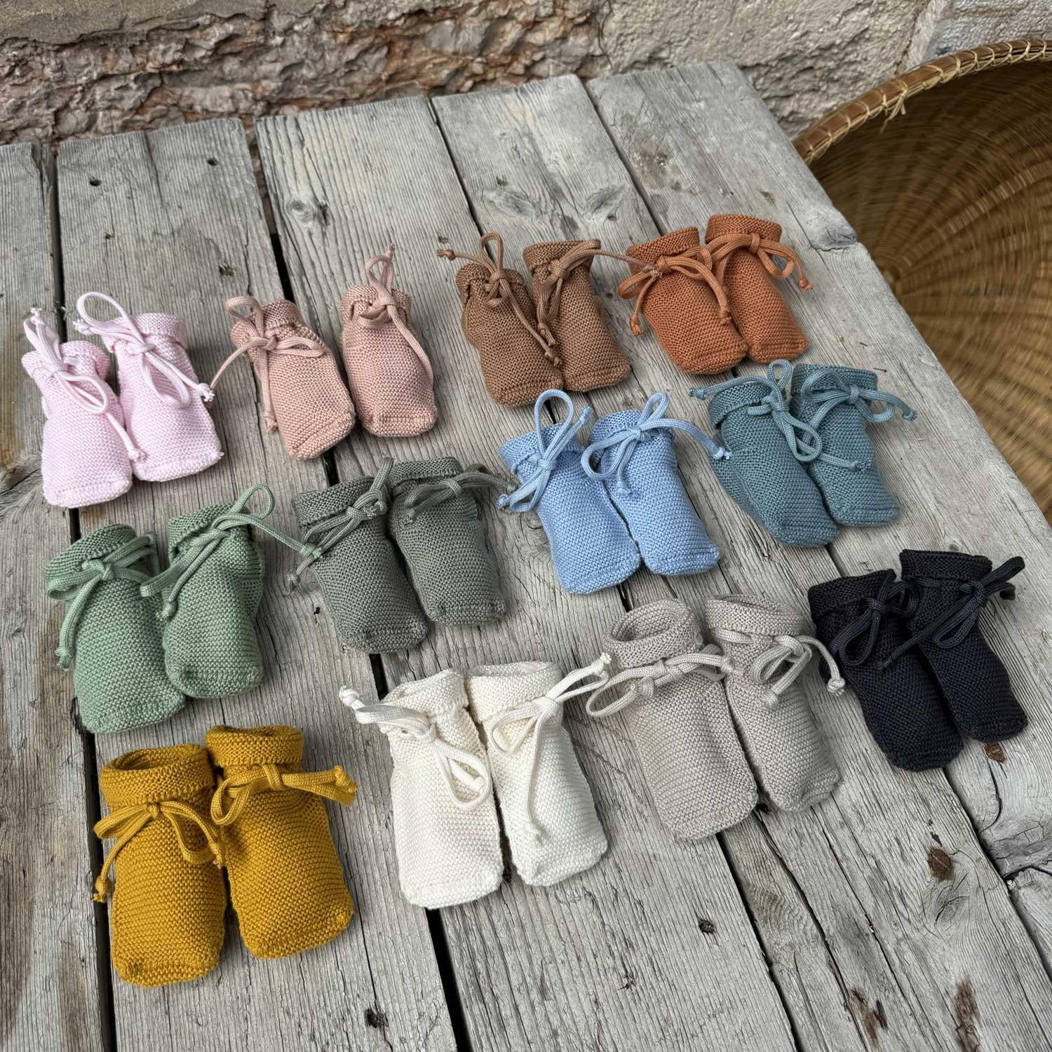 Calze in maglia ideali per i piedini dei più piccoli. Realizzate in 100% cotone organico sono calde e morbide sulla pelle. Ideali per completare i tuoi outfit e da abbinare al completo, gilet e cappello dello stesso colore.