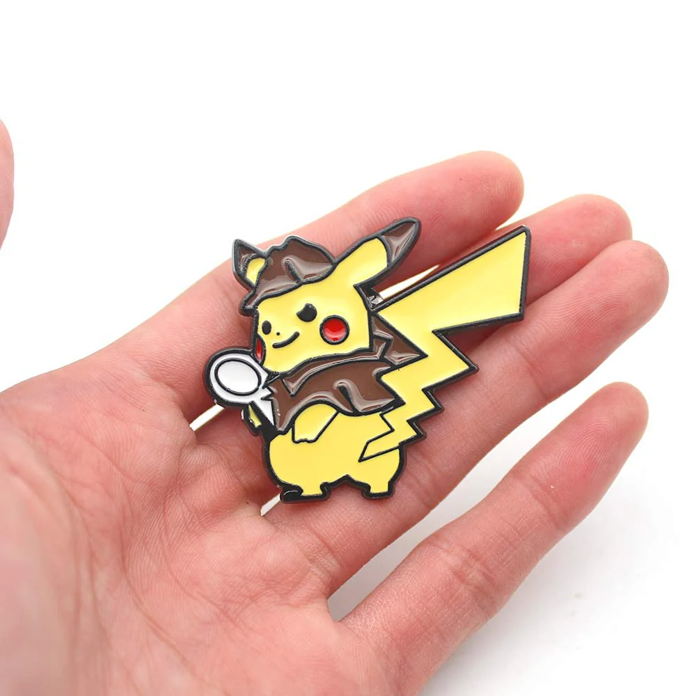 Distintivo/spilla da detective Pikachu. Questa spilla grande circa 3 cm nel design del detective Pikachu perfeziona il tuo outfit. La spilla è realizzata nei minimi dettagli e arricchisce ogni fan di Pokemon.