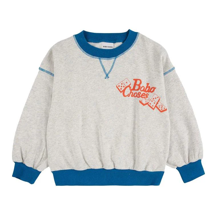 Light heather grey sweatshirt. Designed with long sleeves, ribbed cuffs, loose fit, ribbed bottom, round neck and inner brush fleece. Made in Portugal.