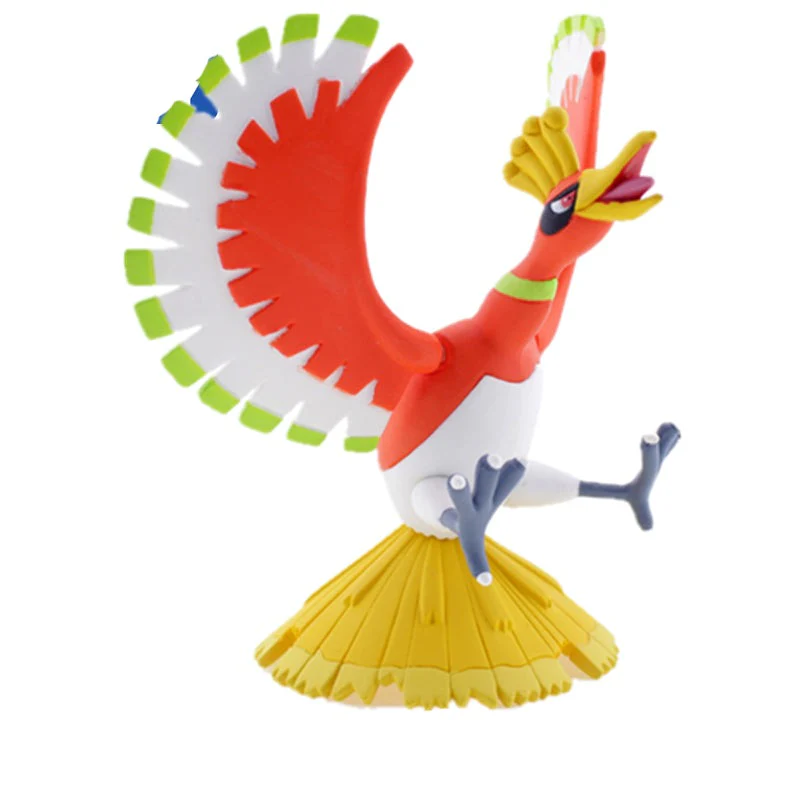 Se ti piacciono i Pokémon della serie anime giapponese, adorerai sicuramente questa figura di Ho-Oh meravigliosamente realizzata. Il Pokémon Fuoco e Volante esiste dalla seconda generazione del gioco e può essere visto sulla copertina della Gold Edition. La figura di Ho-Oh è un Pokémon a due zampe simile a un gallo colorato di rosso, verde e bianco con una coda dorata. Con le ali spiegate, il Pokémon può affermarsi contro i suoi nemici e difendersi.
