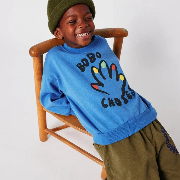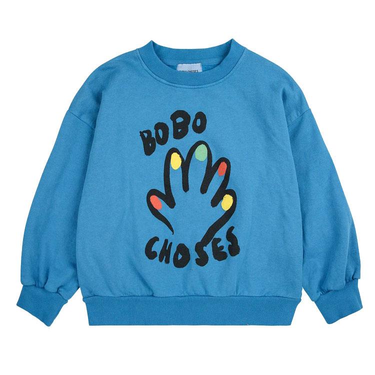 Blue sweatshirt. Designed with long sleeves, ribbed cuffs, loose fit, ribbed bottom and round neck. Made in Portugal.