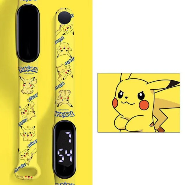 Fantastico braccialetto Pokémon Pikachu con orologio digitale. Il braccialetto con display dell’orologio digitale è disponibile in 4 diversi modelli di Pikachu.