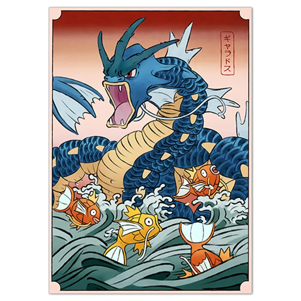 Diese Pokémon Poster bzw. Kunstdrucke im japanischen Stil gefallen nicht nur den kleinen Fans, sondern ganz sicher auch den Erwachsenen. Denn die zarte grafische Art, wie jeweils ein Pokémon an einem See mit Seerosen und Bambus Pflanzen dargestellt wirds, entspricht ganz dem asiatischen Stil. Zudem befinden sich auf jeder Leinwand oben rechts auch japanische Schriftzeichen.