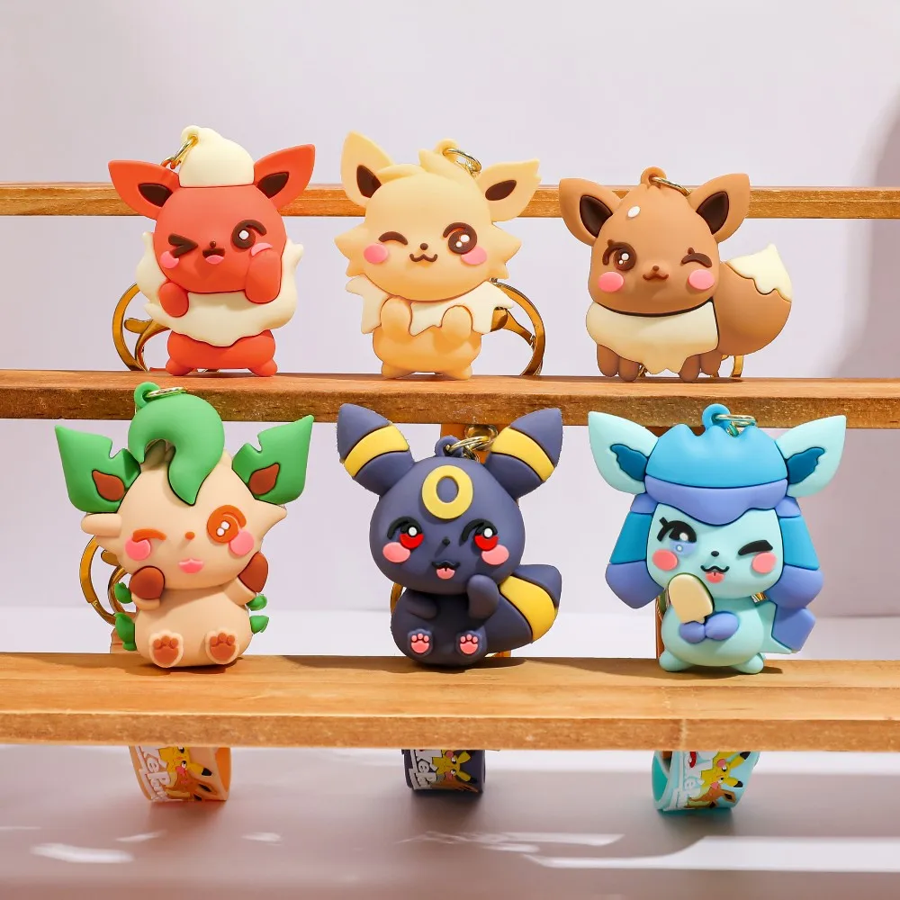 Questi colorati portachiavi di Eevee portano le tue Eeveeluzioni preferite come Flareon, Umbreon, Jolteon e Vaporeon direttamente nella tua borsa o nel tuo portachiavi. Misurano circa 5-6 cm e sono perfetti per i fan che vogliono ravvivare la loro vita quotidiana con un tocco Pokémon. Ideali da collezionare, regalare o semplicemente portare a casa il tuo piccolo Pokémon preferito!