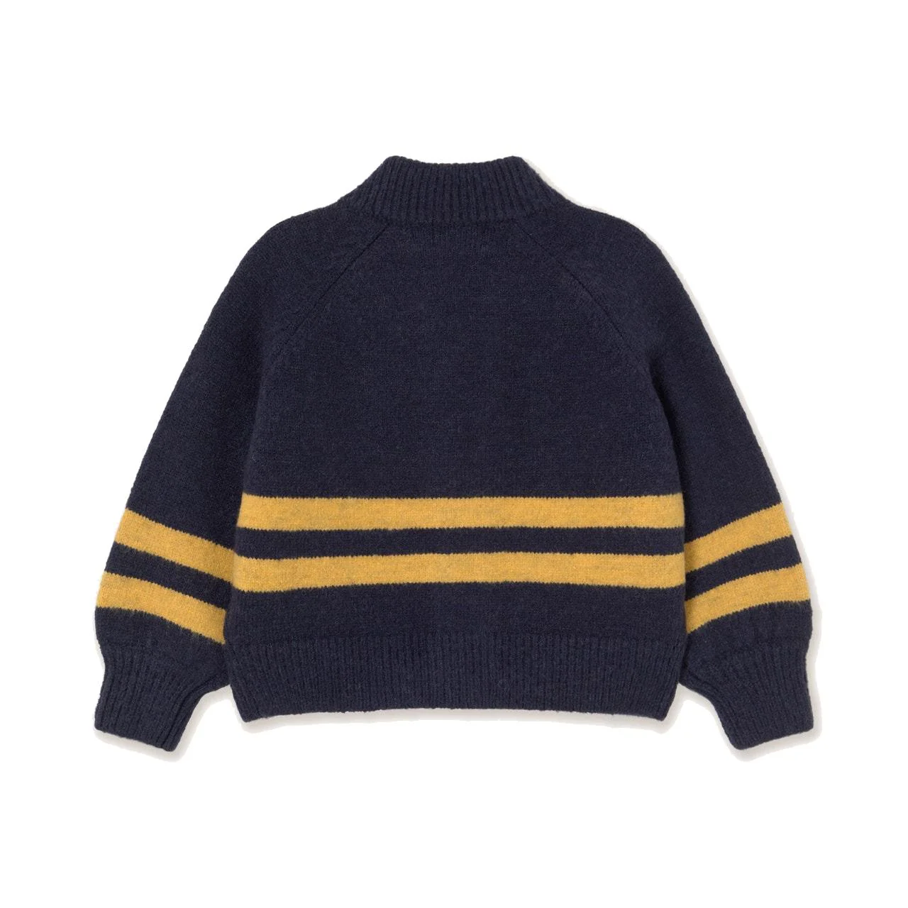 Our mockneck cardigan, crafted from soft, fluffy yarn, brings a fresh twist to a classic piece. Featuring bold stripes graphic, it combines cozy warmth with playful design. The front button opening makes layering effortless, while the mockneck adds a stylish touch. Perfect for cooler days, this piece delivers comfort and personality to any outfit.