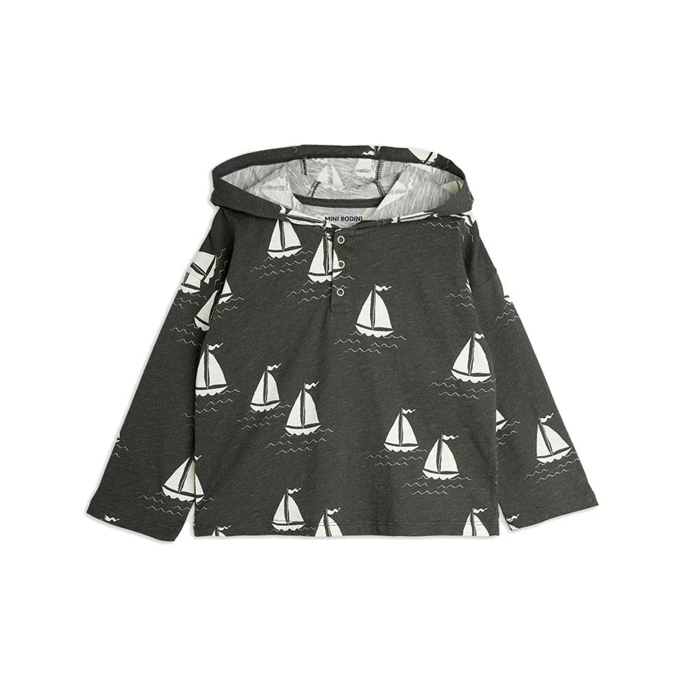 Lightweight hoodie with an all-over Sailing Boats print, made from 100% GOTS-certified organic cotton for a soft and durable feel