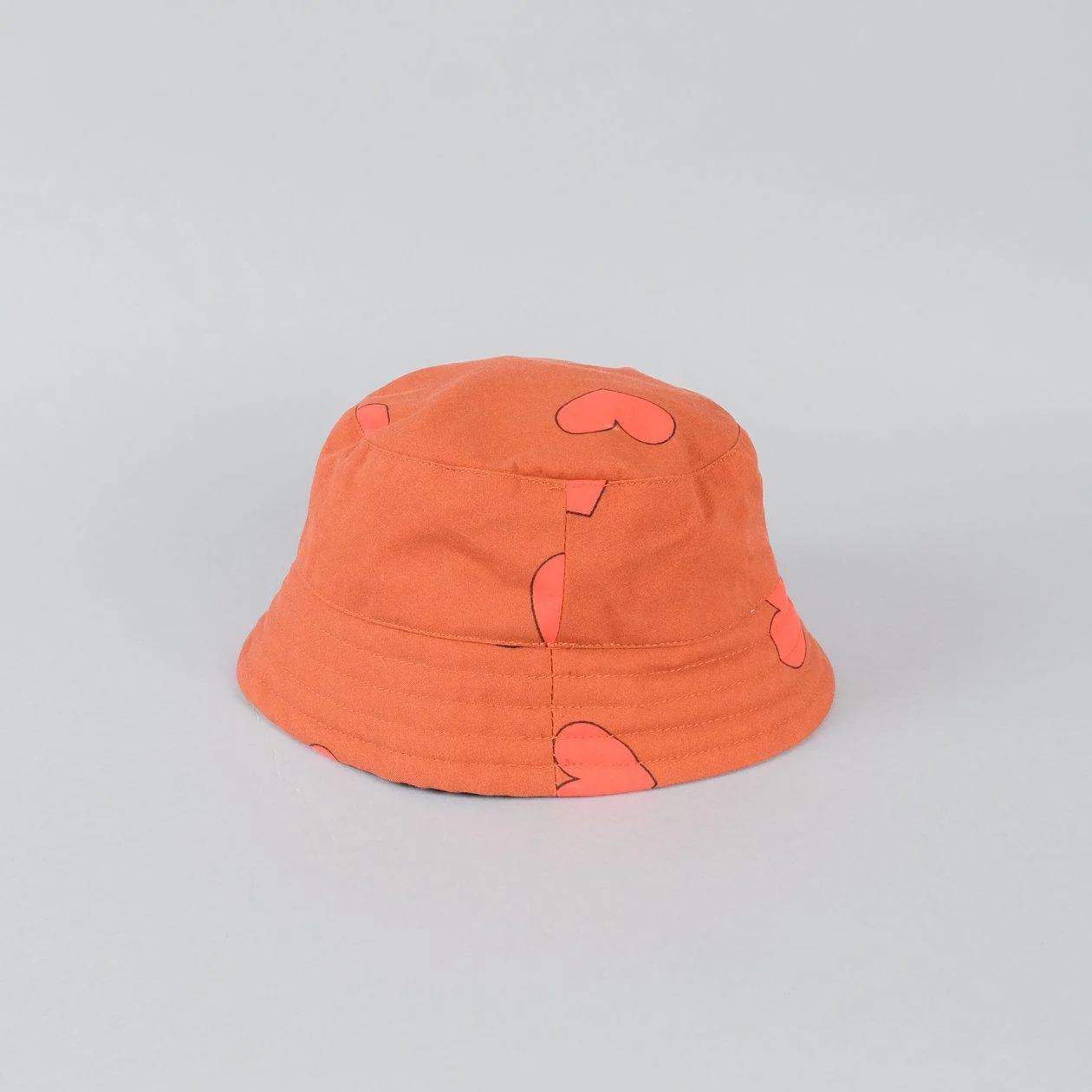 Cappello a secchiello arancione con fantasia cuori all over.