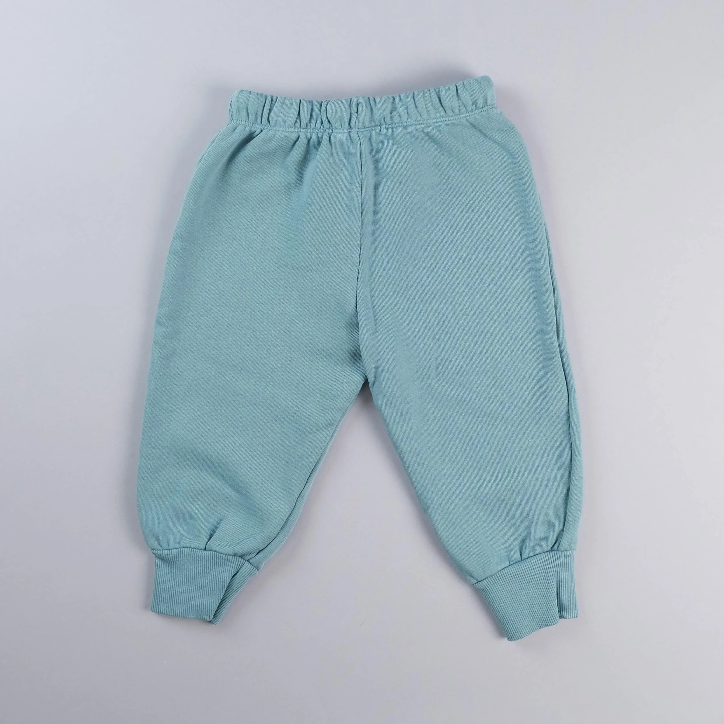 Pantaloni in morbida felpa di cotone con elastico e coulisse in vita e polsini finali.