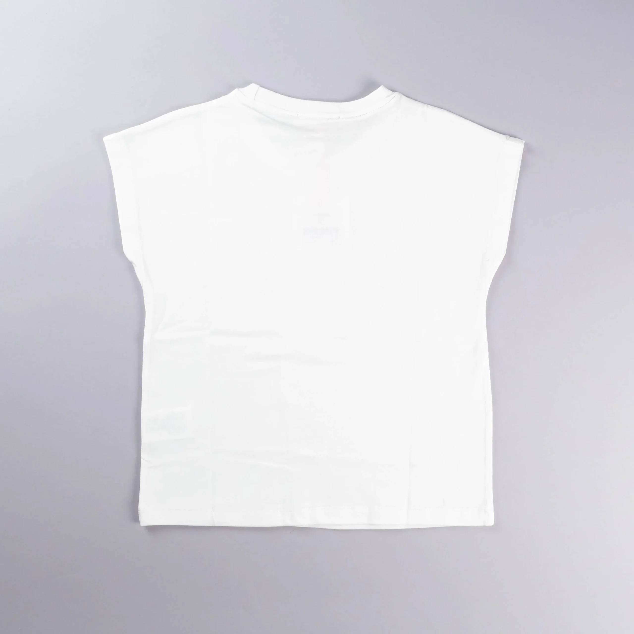 T-shirt senza maniche con scollo tondo e stampa frontale.